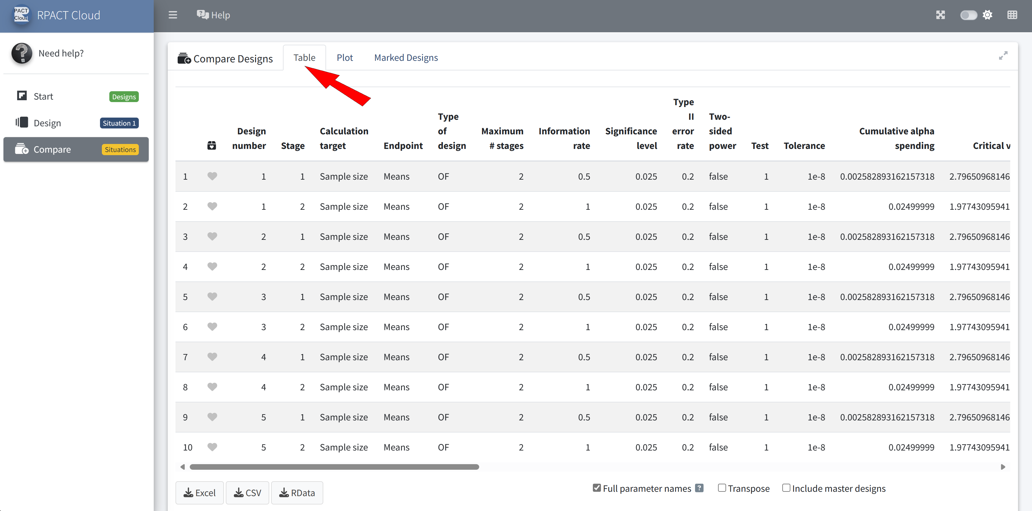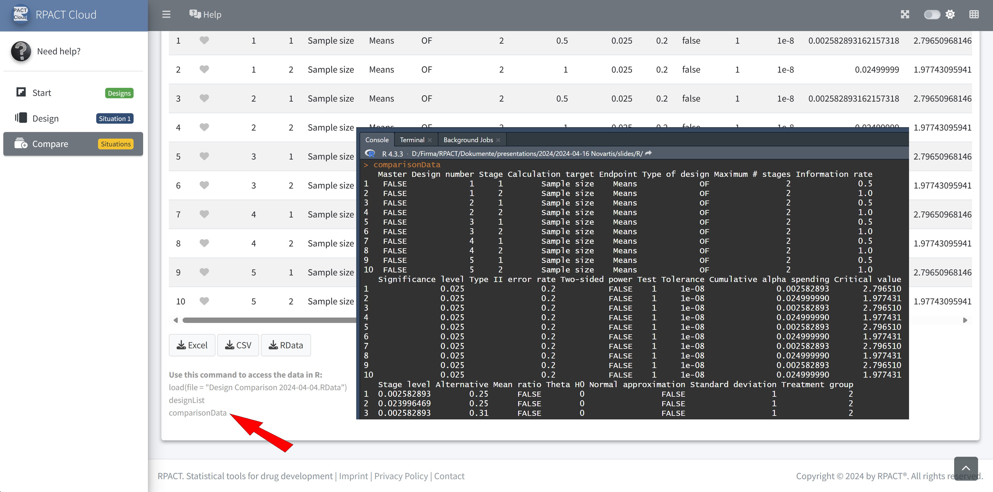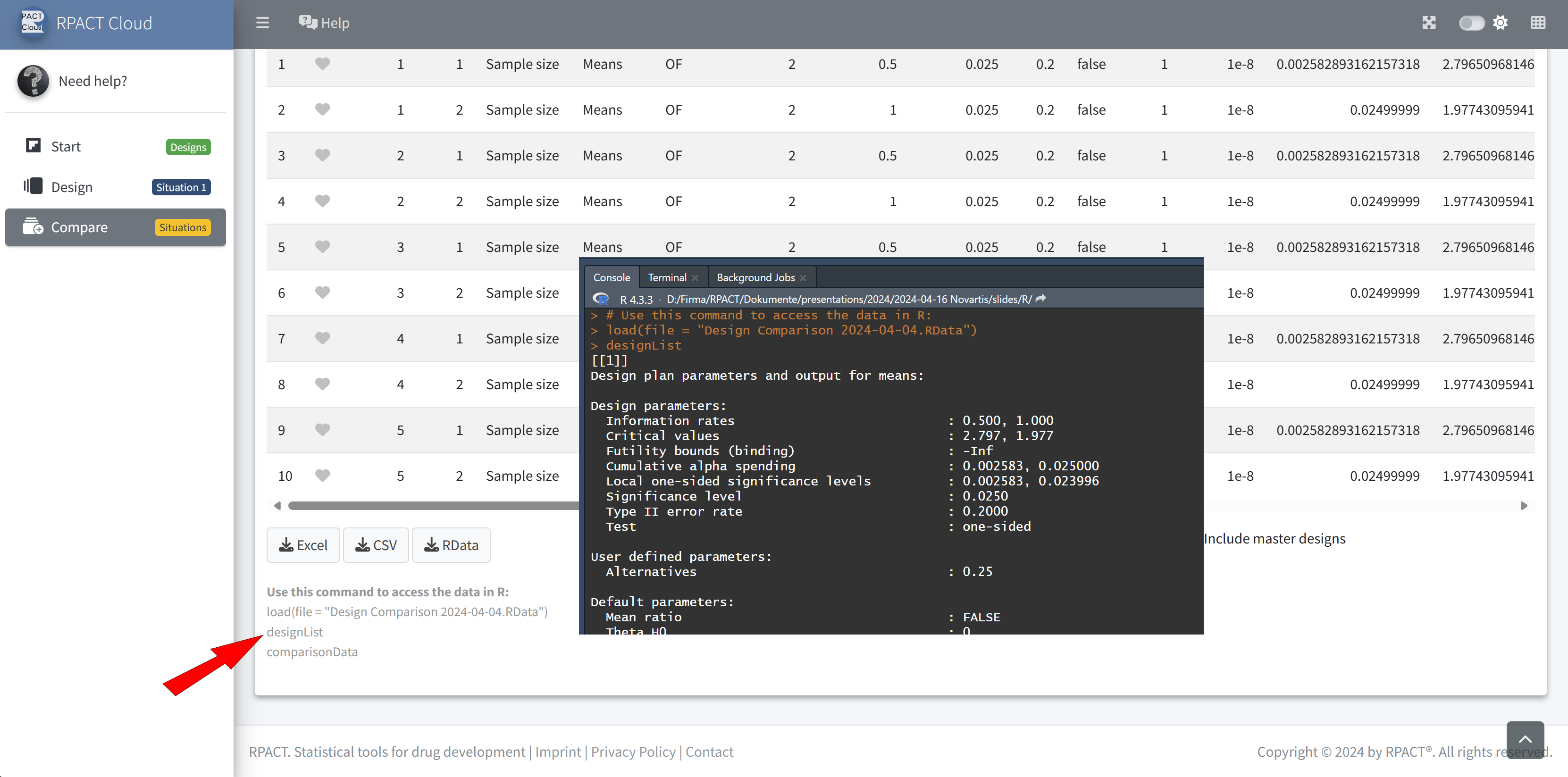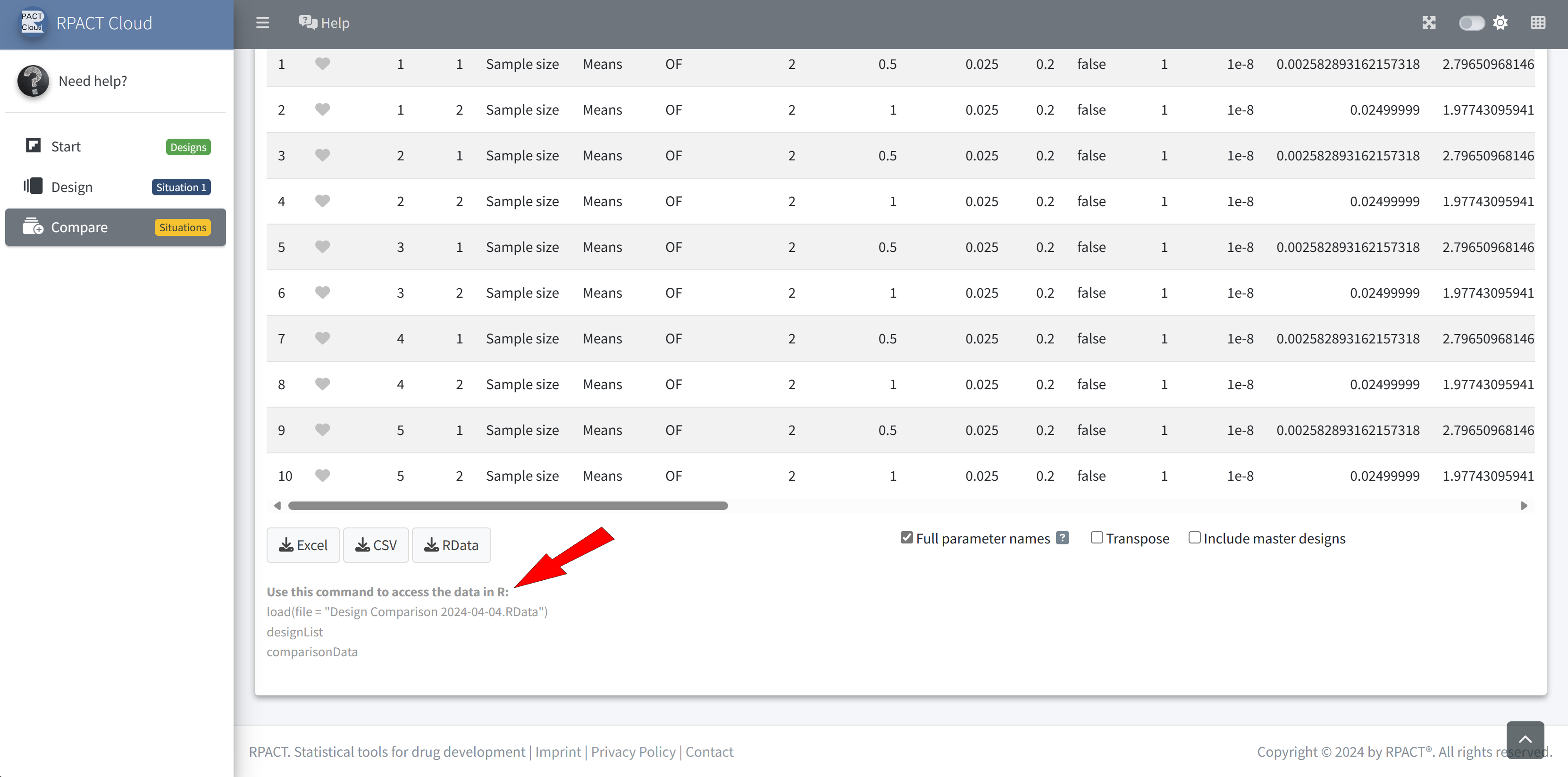 RPACT Cloud – Output Table